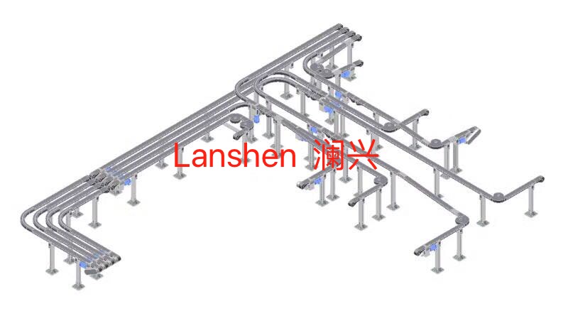 链板柔性输送线无论是在水平面还是垂直面都能胜任急速的转弯,同时摩擦力和噪音小;